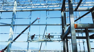 溫州龍灣國際機場T2航站樓是由浙江省發改委批準建設的“省411”工程,項目總建筑面積11.6萬平方米,總投資19.6億元,航站樓設21座登機橋,22條安檢通道,51個值機柜臺和6套行李提取系統,啟用后乘客基本無需使用擺渡車登機。據溫州機場集團建設投資公司總經理吳時忠介紹,目前工程已完成主體土建混凝土施工和鋼屋蓋結頂,幕墻、屋面、市政高架等部分已施工過半,后續將進行室內裝飾和弱電施工。