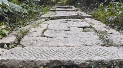 古道每一階均用雕有花紋、繩紋、云紋防滑的條石鋪就。