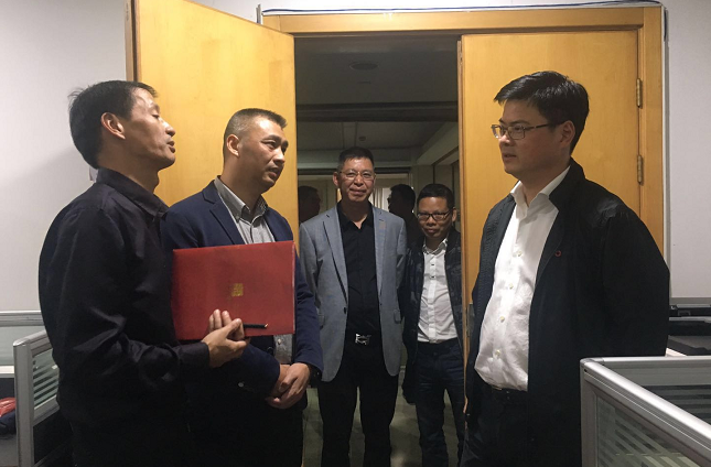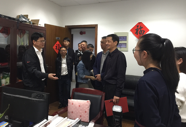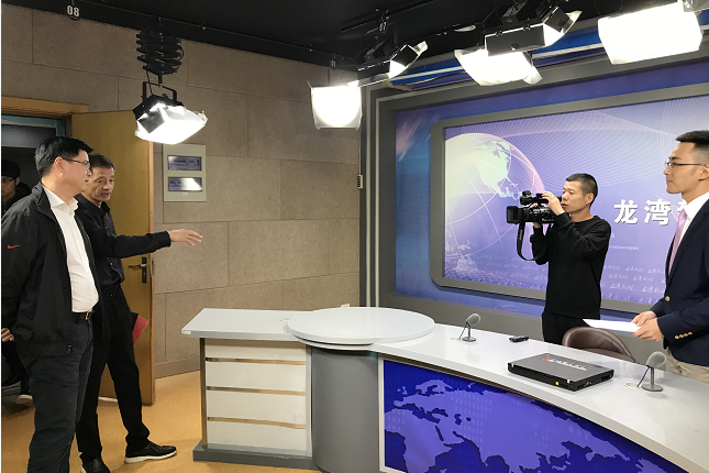 陳應許一行首先來到演播室、制作室,詳細了解拍攝、演播、制作等工作流程,與工作人員一一握手,親切交流,氣氛熱烈。
