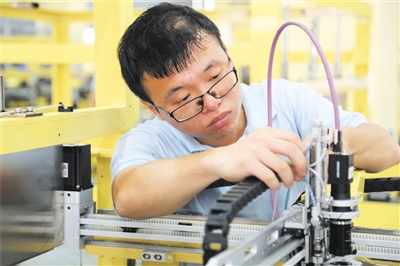 公司工作人員在安裝調試新產品 葉曉東/攝